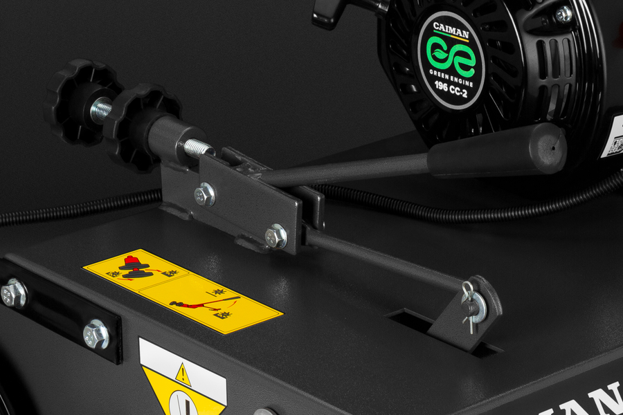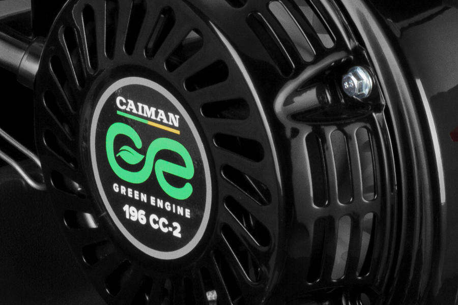 Четырехтактный бензиновый двигатель Caiman Green Engine 196CC. Экологичный мотор премиум-класса оснащен губчатым фильтром в масляной ванне, который превосходно очищает сильно запыленный воздух, чугунной гильзой цилиндра, повышающей износостойкость и надежность. Изменение угла наклона клапанов на 25 градусов значительно увеличило объем впускаемого воздуха и отводимых выхлопных газов, и как следствие, мощность. Особая форма камеры сгорания позволила повысить эффективность сжигания топлива и снизить уровень вредных выбросов. Двигатель сертифицирован для использования в странах Европы и Японии.