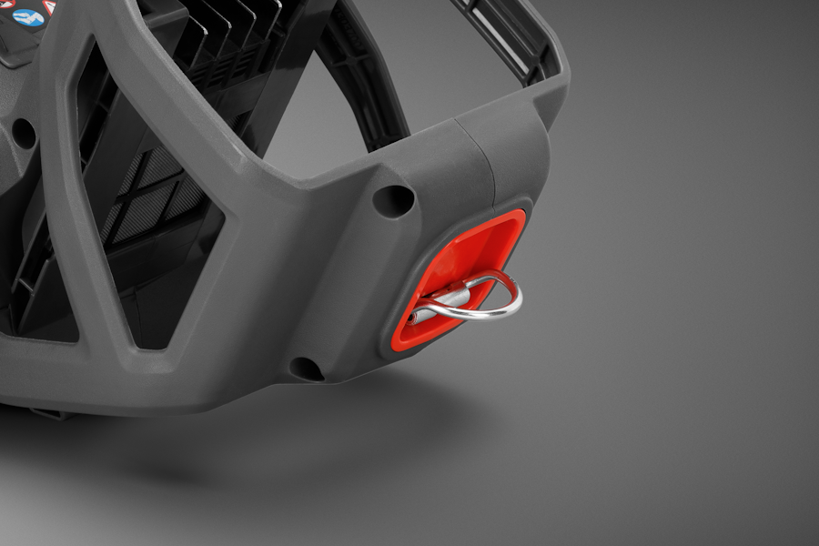 В случае необходимости работы на большой высоте, например, при обрезке деревьев с платформы автовышки, специальная петля на корпусе пилы позволяет закрепить страховочный трос или шнур, чтобы не допустить падения инструмента на землю.
