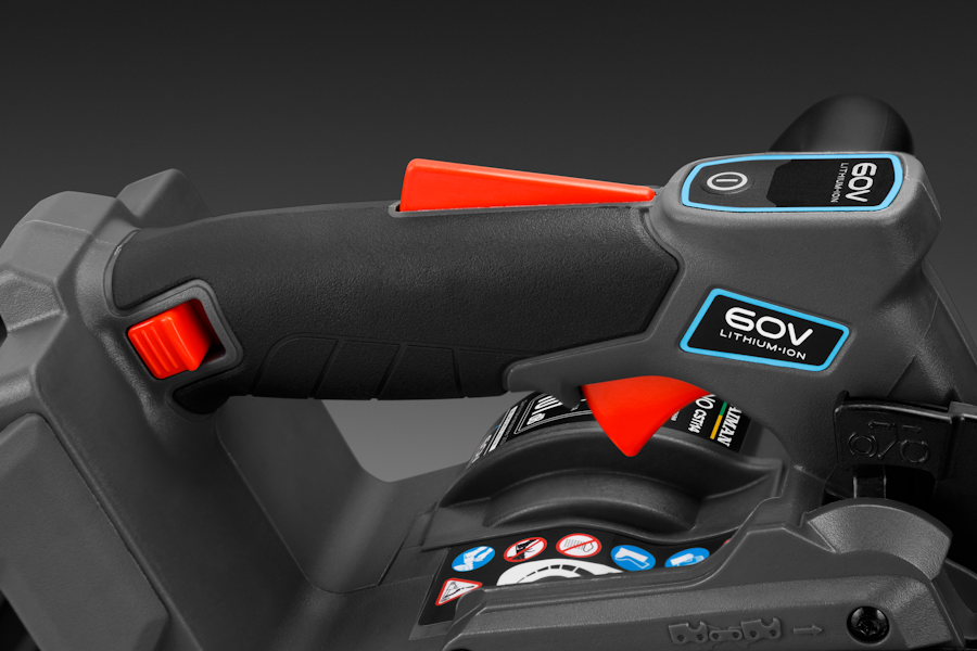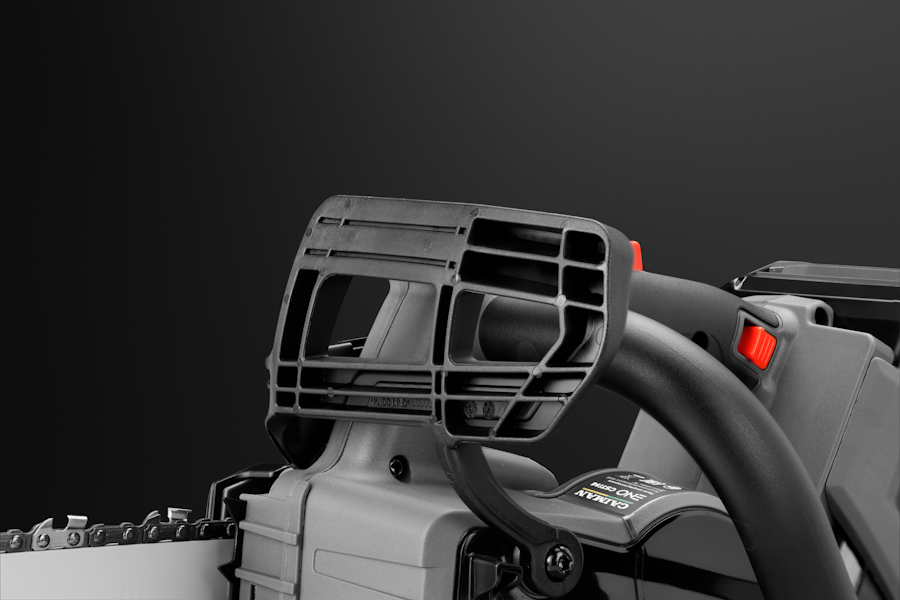 Безопасность оператора обеспечивается при помощи инерционного тормоза, способного моментально остановить вращение цепи в случае отскока пилы назад.