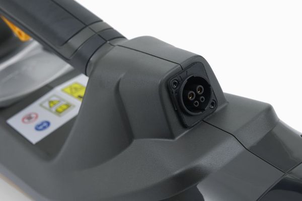 Быстрое подключение и простое хранение. Подключите воздуходувку к аккумулятору с помощью системы быстрого подключения. Кнопка быстрого отсоединения отделяет трубку для экономии места для хранения.
