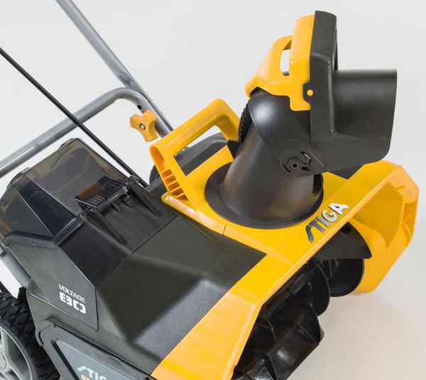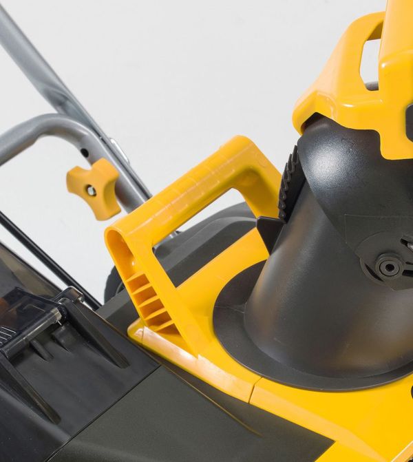 Складная рукоятка и небольшой вес машины делают ее удобной для хранения и транспортировки. Удобная рукоятка, расположенная за желобом, облегчает подъем и перемещение снегоуборочной машины.