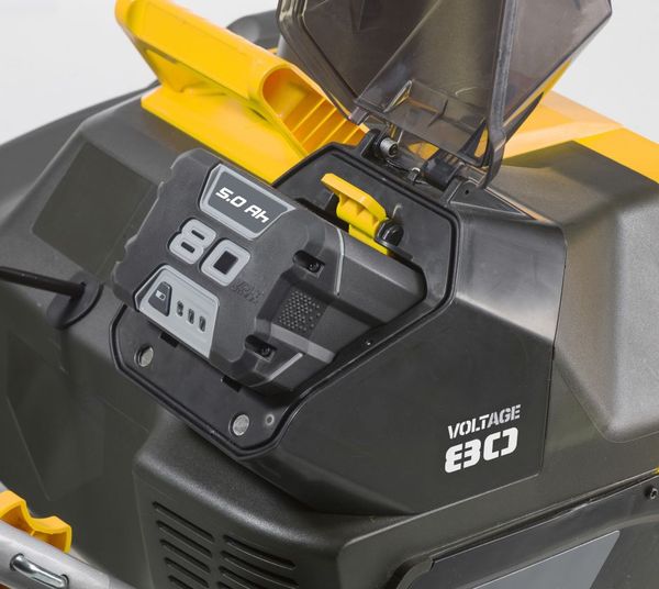 Li-Ion аккумулятор. Литиево-ионный аккумулятор напряжением 80 В и емкостью 5 А*час обеспечивает около 60 минут непрерывной работы, аккумулятор емкостью 2.5 А*час дает возможность работать 30 минут. Рабочий температурный режим до -20 градусов. Время зарядки аккумулятора 5 А*час составляет 210 минут. Удобная замена аккумулятора и высокоэффективная система быстрой зарядки означает возможность постоянной работы на профессиональном уровне.