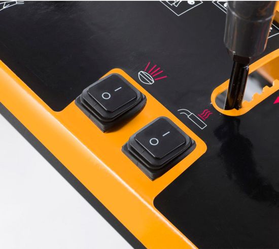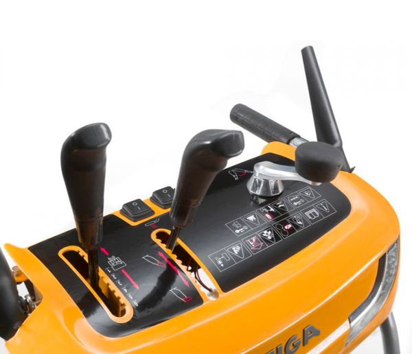 Все рычаги управления (желоба, дефлектора, переключения скорости), снегоуборщиком расположены непосредственно на панели оператора, что в значительной степени делает производство работ комфортным.