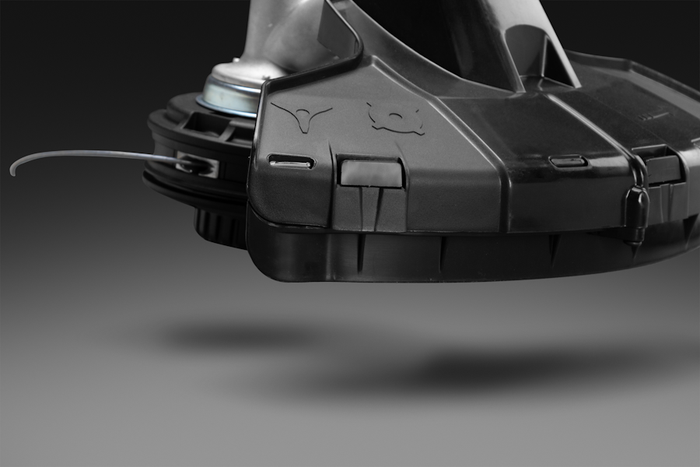 - Комбинированный защитный кожух. В стандартной комплектации имеется комбинированный защитный кожух со съемным элементом, который подходит как для работы с триммерной насадкой, так и со стальным диском. Для работы со стальным диском необходимо отсоединить нижнюю съемную часть кожуха.