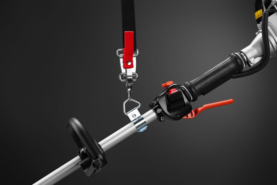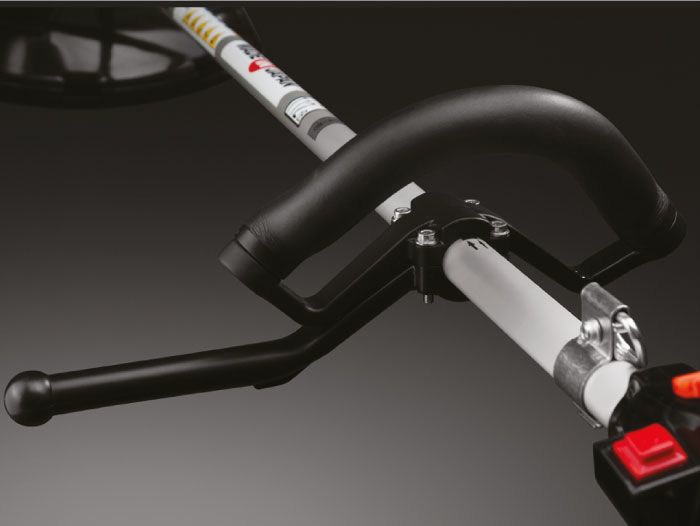 Одинарная рукоятка позволяет эффективно работать под разными углами на участках с частыми посадками, вокруг деревьев и вдоль строений. За счет такой формы повышается маневренность бензокосы, а также экономится место при хранении. Конструкция рукоятки позволяет отрегулировать ее под любой рост оператора.