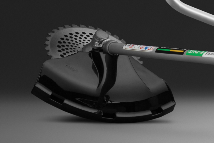 В комплектации имеется комбинированный защитный кожух со съемным элементом, который подходит как для работы с триммерной насадкой, так и со стальным диском (необходимо отсоединить нижнюю съемную часть кожуха).