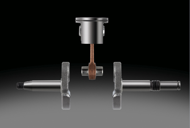 - Коленчатый вал из трех частей обладает исключительной прочностью и долговечностью