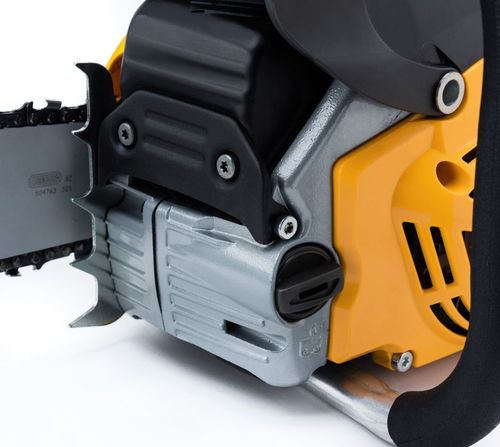 Ручной и инерционный цепной тормоз позволяет одной рукой остановить пилу всего за 0,089 секунды для максимальной безопасности оператора в случае отбрасывания пилы.