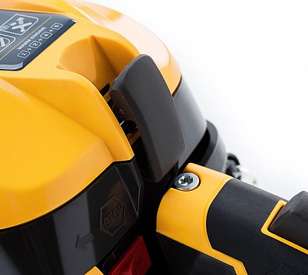 Ручной и инерционный цепной тормоз позволяет одной рукой остановить пилу всего за 0,089 секунды для максимальной защиты оператора на случай отбрасывания пилы.
