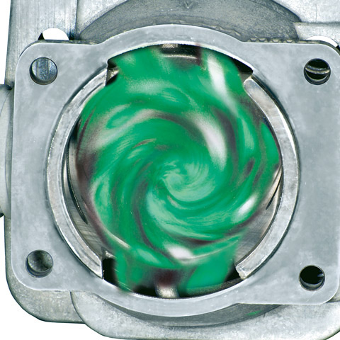 В четырех перепускных каналах рабочая смесь перед воспламенением завихряется. В результате оптимально сжигается топливо и заметно повышается КПД двигателя. Как следствие, падает расход топлива и увеличивается крутящий момент в широком диапазоне оборотов