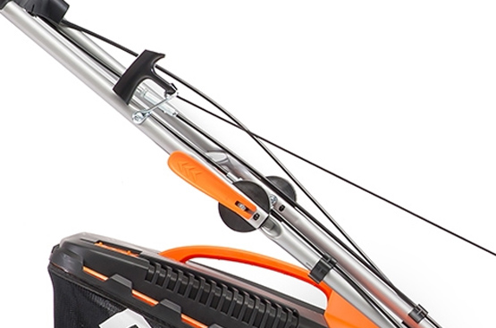 Складная конструкция. Рукоятка за несколько секунд складывается вдоль корпуса газонокосилки, чтобы обеспечить компактное хранение