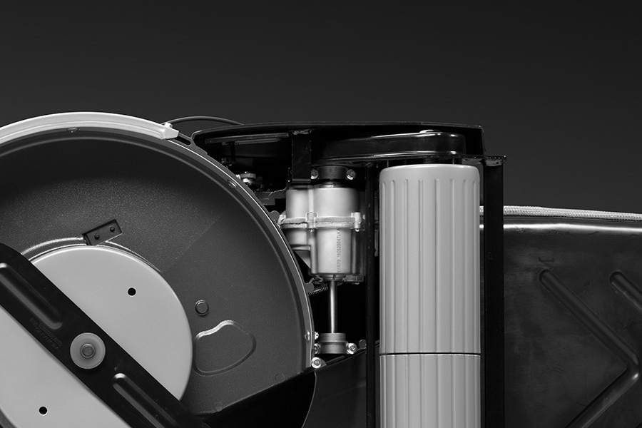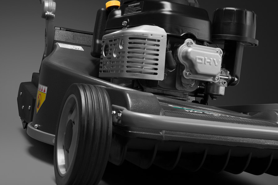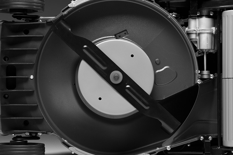 Корпус косильной деки выполнен из высококачественного алюминия с ударопрочным молотковым покрытием. Специальная форма деки позволила увеличить объем воздушного потока на 40% для превосходного сбора травы в любых условиях кошения. Использование алюминия позволило улучшить характеристики деки и повысить срок службы.
