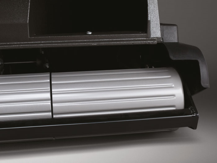 Задние ролики имеют уникальную конструкцию, не похожую ни на одну другую косилку с задним роликом. Стальные ребристые ролики соединены с храповым механизмом, который заключен в вакуумное уплотнение для предотвращения попадания травы, грязи и воды. Ролики слегка приминают траву в направлении движения, за счет чего на газоне формируются декоративные полосы. Таким образом можно создать оригинальный узор: полоски, клетку, круги, волны.