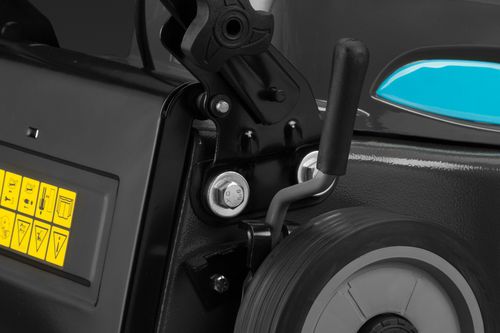 Для удобства кошения любой травы косилка имеет систему центральной регулировки высоты стрижки, которая позволяет быстро и легко устанавливать уровень высоты среза одним движением сразу по четырем колесам. Высота скашивания регулируется в 6 положениях в диапазоне от 15 до 75 мм.