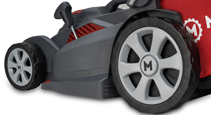 Большие задние колеса обеспечивают повышенную проходимость и легкость хода на неровных участках земли.