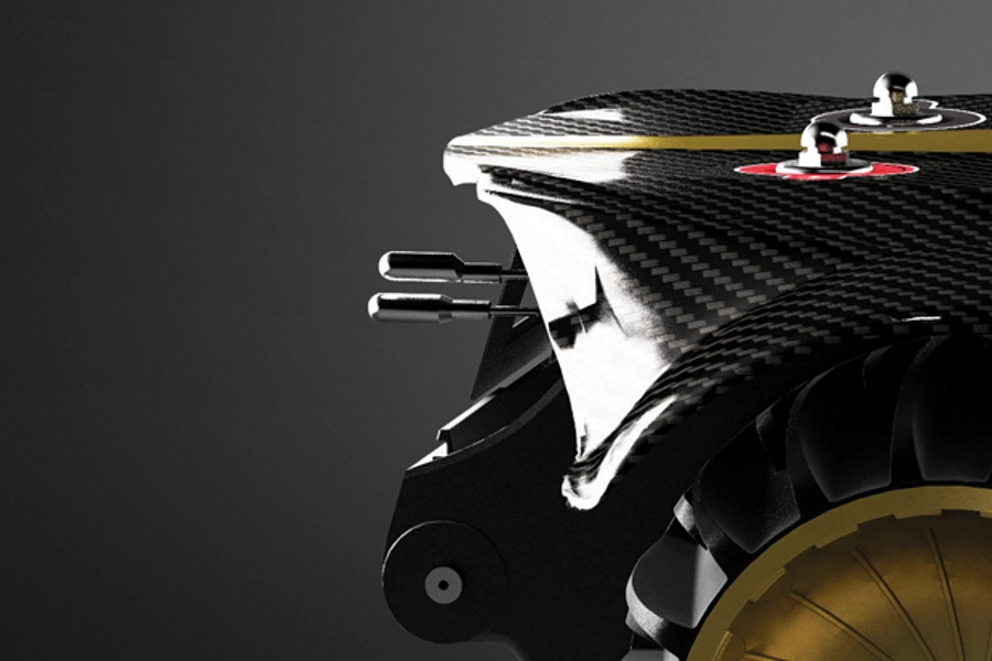 Корпус робота выполнен из композитного материала с применением углеволокна. Преимуществами карбона являются: малый вес, высокая прочность и отличная износостойкость.