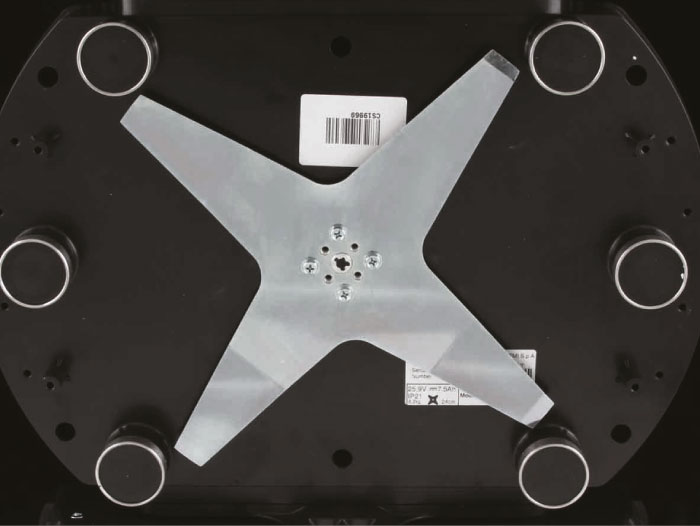 Робот в стандартной комплектации оснащен стальным мульчирующим 4-лопастным ножом Diamond Blade диаметром 250 мм. Благодаря специальной технологии изготовления ему не требуется заточка и балансировка.