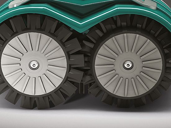 Система полного привода 4WD улучшает ходовые качества робота, особенно на склонах, увеличивает производительность машины при кошении газона.