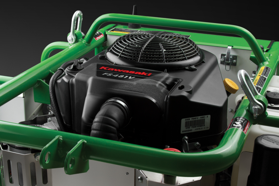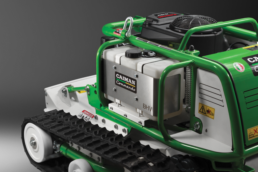 Caiman Commando оснащен двухцилиндровым V-образным японским двигателем Kawasaki FS481V (Япония) с рабочим объемом 603 см3. Мотор обеспечивает энергией электрический привод деки и трансмиссию траков. Двойной воздушный фильтр лучше задерживает мелкие частицы от попадания в карбюратор и увеличивает срок службы двигателя до 20%. За счет масляного насоса, который обеспечивает принудительную подачу масла в пáры трения, и специальной конструкции картера двигателя, достигается предельно допустимый угол наклона двигателя для постоянной работы – 45°.