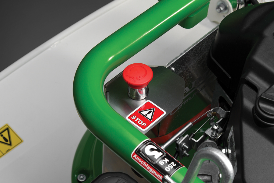 Во избежание незапланированного запуска двигателя машина снабжена кнопкой аварийной остановки.
