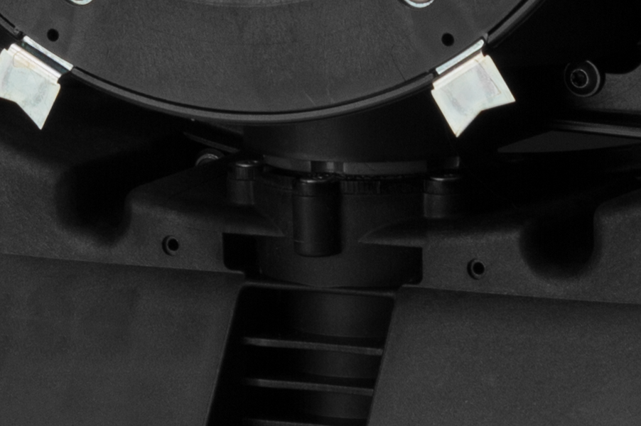 Жесткий 6-лопастной мульчирующий нож диаметром 250 мм особой формы с лазерной заточкой лезвий сочетает в себе преимущества жестких цельнометаллических ножей (способность полноценного кошения, эффективного мульчирования и продолжительного срока службы) и центробежных ножей (низкий уровень шума).