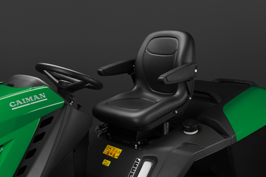 CAIMAN Comodo MAX 2WD HD оснащена системой безопасности Smooth Operate. Она состоит из датчика, расположенного под сиденьем с подлокотниками. Как только оператор покидает рабочее место, двигатель и косильная дека автоматически отключаются. Конструкция кресла позволяет оператору с комфортом находиться за рулем продолжительное время без ощущения усталости.