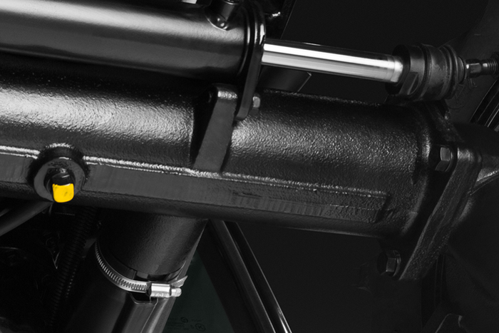 Отдельный гидравлический насос с мощностью прокачки жидкости 8 литров в минуту позволяет прикладывать минимум усилий к рулевому колесу. Тем самым повышается комфорт при управлении машиной даже в тяжелых рабочих условиях и снижается усталость оператора при интенсивном маневрировании.