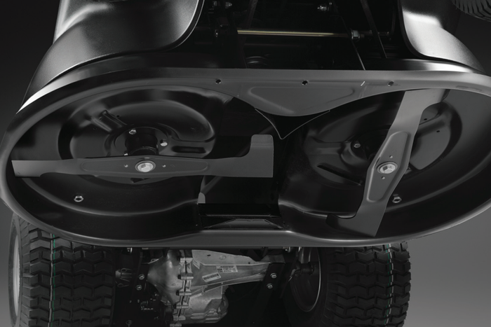 S-образные ножи режущей деки создают мощный воздушный поток, который перед скашиванием приподнимает траву вверх. Это улучшает подачу травы в травосборник, обеспечивает лучшую заполняемость, дает возможность сбора не только скошенной травы, но и опавших листьев. Конструкция обеспечивает высокое качество стрижки, эффективную работу в режиме мульчирования, исключает образование участков нескошенной травы даже при маневрировании машины. Ножи защищены от повреждений специальными срезными шплинтами.