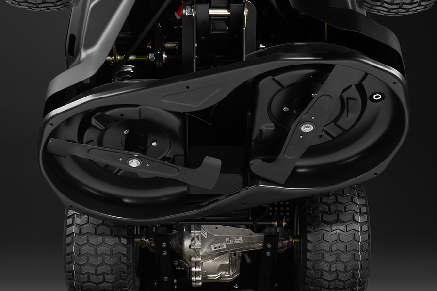 S-образные ножи режущей деки создают мощный воздушный поток, который перед скашиванием приподнимает траву вверх. Это улучшает подачу травы в травосборник, обеспечивает лучшую заполняемость, дает возможность сбора не только скошенной травы, но и опавших листьев. Конструкция обеспечивает высокое качество стрижки, эффективную работу в режиме мульчирования, исключает образование участков нескошенной травы даже при маневрировании машины. Ножи защищены от повреждений специальными срезными шплинтами.