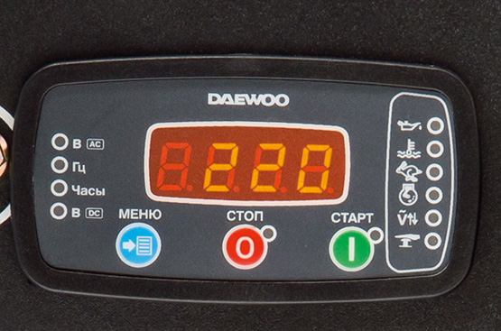 Модуль управления со встроенным микропроцессором позволяет контролировать функции автоматического старта и выключения, дистанционного запуска, защитного отключения при достижении критических параметров работы. На электронном дисплее отображаются характеристики тока, напряжение и отработанное время.