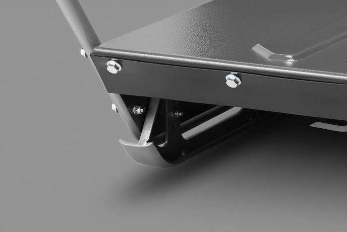 Высота стрижки регулируется при помощи перестановки креплений металлических опор деки («салазок»). Доступно 4 положения: 92, 128, 165, 201 мм.