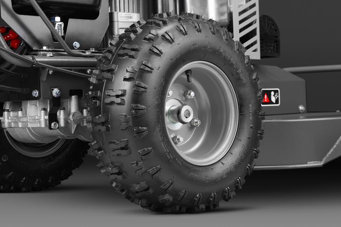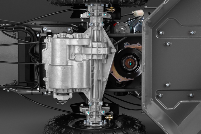 Привод на колеса осуществляется посредством механической коробки скоростей. Корпус выполнен из высококачественного алюминия, а все внутренние приводные компоненты изготовлены из закаленной стали. Подобная конструкция снижает время простоя и повышает производительность. Она облегчает работу оператора на склонах или неровных участках, а также при кошении густой и плотной растительности.