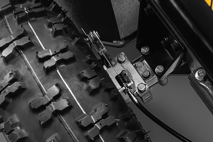 Тормоза закрытого типа не допускают попадания пыли, грязи и обрезков травы внутрь механизма. Они выполняют двойную функцию: стояночного тормоза и имитации блокировки дифференциала (блокируя одно из колес, можно облегчить выполнение поворота в соответствующую сторону).
