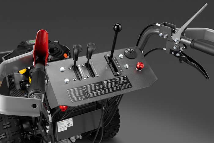 Операторская панель имеет удобное расположение рычагов управления, она оснащена краткими инструкциями по запуску и остановке двигателя, включению и отключению привода колес и ножа. На рукоятках расположены специальные щитки, препятствующие контакту рук с высокой растительностью.