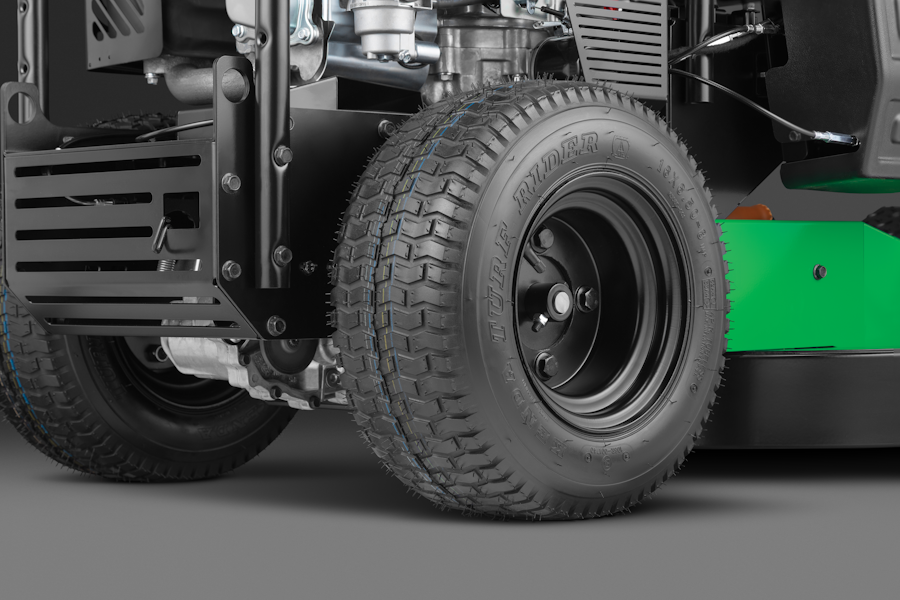 Широкие дерновые задние колеса Turf Rider снижают давление на грунт. Специальный мелкий протектор не портит газон.