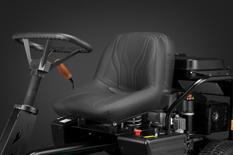 Рама райдера имеет сочлененную конструкцию, позволяющую передней и задней осям отклоняться относительно друг друга на 5° по вертикали. Это обеспечивает максимальный контакт с поверхностью газона, повышает проходимость на неровных участках, и точность управления.