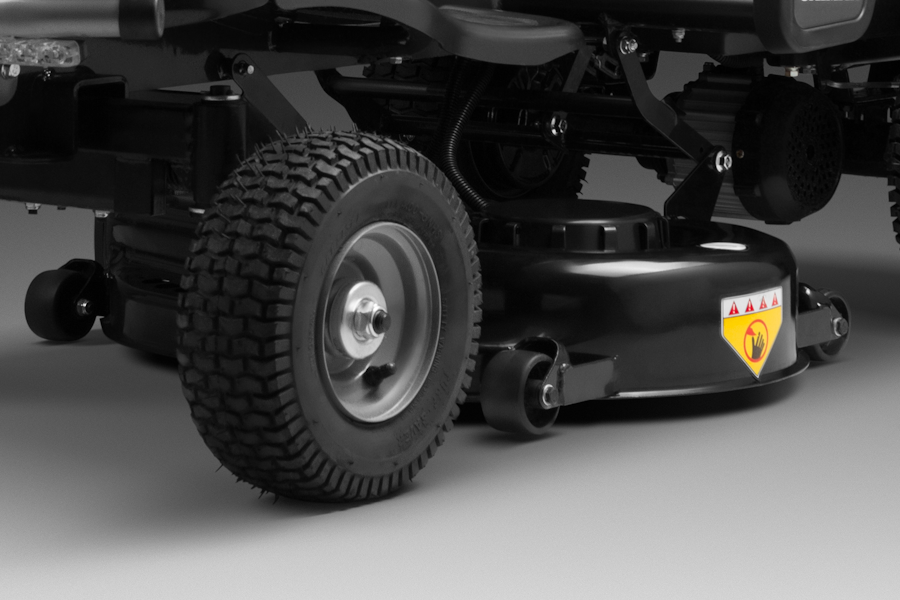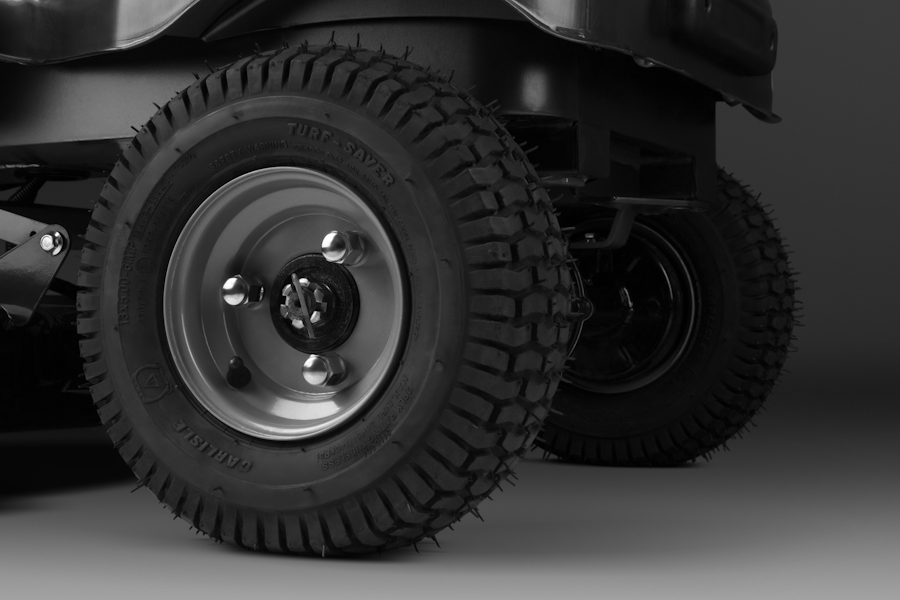 Колеса райдера имеют деликатный протектор, благодаря чему минимизируется давление на газон и риск его повреждения.