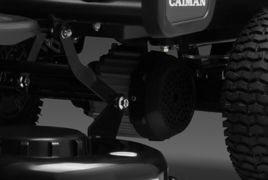 В основе этой модели райдера лежит современный электрический двигатель. При небольших габаритах он имеет достаточную мощность, чтобы обеспечивать качественную работу привода на колёса и режущий инструмент. Электрическая трансмиссия позволяет плавно изменять скорость движения техники вперёд и назад. Режущая часть косилки представлена стальной декой и двойным роторным ножом. Дека имеет специальные колёса, которые помогают режущему инструменту повторять контуры рабочего участка, тем самым повышая качество кошения.