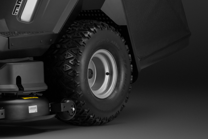 Машины CAIMAN Comodo оснащены широкими газонными колесами. Они разработаны, чтобы максимально уменьшить воздействие на поверхность. Большая площадь касания снижает давление на грунт, а специальный рисунок протектора снижает риск повреждения деликатного газона.