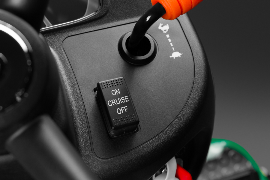 Функция круиз-контроля позволяет более эффективно использовать машину при работе на больших и открытых территориях, снижает нагрузку на оператора. Круиз-контроль включается при помощи соответствующей кнопки на панели. При работе в этом режиме снижается нагрузка на двигатель и трансмиссию за счет исключения резких перепадов мощности, тем самым увеличивается срок службы данных узлов.