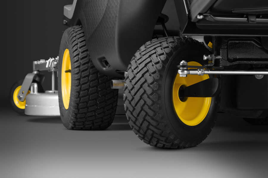 Малый радиус разворота позволяет работать вплотную к различным объектам, маневрировать среди деревьев и снизить необходимость финишного докашивания в труднодоступных зонах.