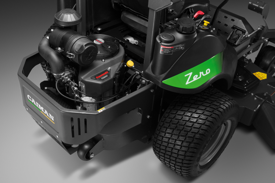 Машины Caiman Zero оснащены мощными 2-цилиндровыми V-образными японскими двигателями Kawasaki серии FX. По сравнению с большинством двигателей такого класса расход топлива ниже на 20%, что дает экономию при регулярной работе в сезон от 0,5 до 1 тонны топлива. Двойной воздушный фильтр лучше задерживает мелкие частицы от попадания в карбюратор и увеличивает срок службы двигателя до 20%. Наработка на отказ в 2 раза выше, чем у одноцилиндровых двигателей аналогичной мощности. Благодаря чугунной гильзе цилиндра, насосу с принудительной подачей масла и специальной конструкции картера достигается предельно допустимый рабочий угол наклона для постоянной работы - 25°, для кратковременной - 40°.