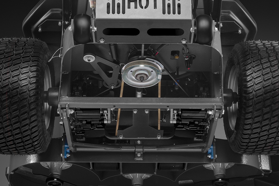 Газонокосильные машины Caiman Zero оснащены гидростатическими трансмиссиями Hydro-Gear с увеличенной тягой. Трансмиссии являются полностью обслуживаемыми, что позволяет работать машине на высоких скоростях, сохраняя качество стрижки, производительность и комфорт управления. Трансмиссии оснащены нагнетательными насосами, выходными валами увеличенного диаметра. Главным достоинством гидростатической трансмиссии является возможность плавного изменения передаточного отношения в широком диапазоне частот вращения, что позволяет гораздо лучше использовать крутящий момент двигателя машины по сравнению со ступенчатым приводом. Поскольку выходную частоту вращения можно довести до нуля, возможен плавный разгон машины с места без применения сцепления. Малые скорости движения особенно нужны для проведения качественных работ по кошению на неровных участках.