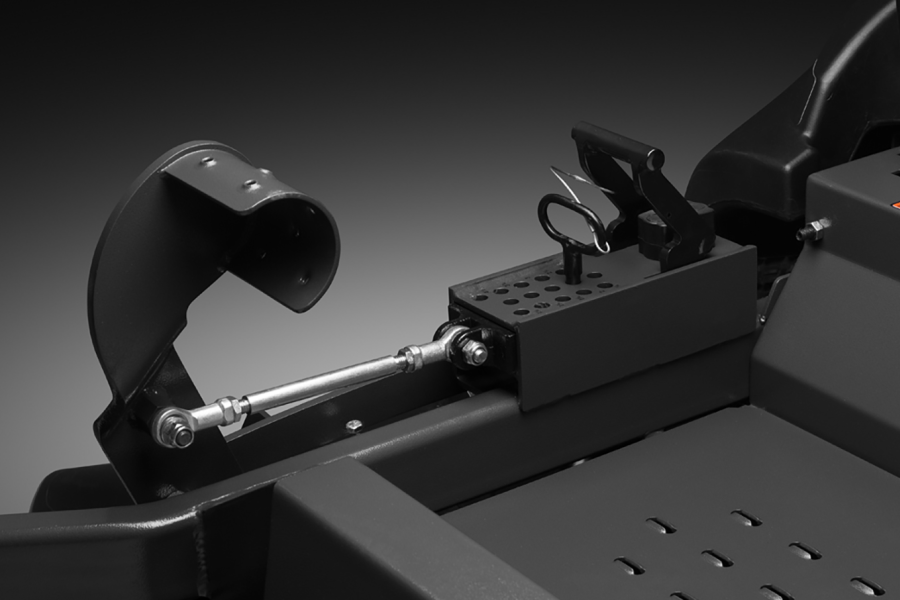 Рычаг регулировки высоты кошения выполнен в виде механизма с ножной педалью для обеспечения возможности мгновенно изменять рабочую высоту в зависимости от поставленной задачи и формы ландшафта. Регулировка высоты кошения имеет 15 различных положений от 25 до 120 мм с шагом 6,35 мм.