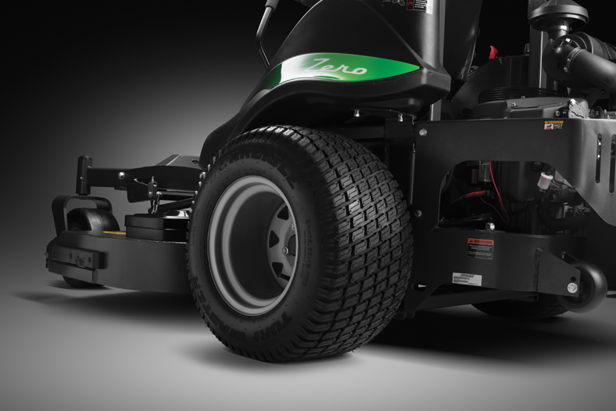 Машины Caiman Zero оснащены широкими дерновыми задними колесами Turf Master 24х12-12, созданными для бережного воздействия на газон. Колеса снижают давление на грунт и благодаря специальному мелкому протектору не портят траву.