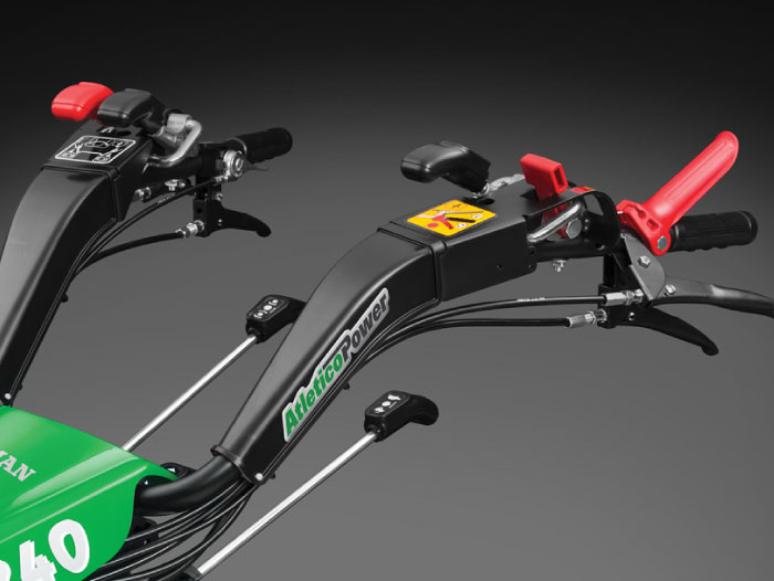 Регулируемые эргономичные рукоятки. Эргономичные рукоятки специально разработаны для выдерживания больших нагрузок при обработке тяжелых целинных почв. Благодаря им оператор значительно экономит силы. Рукоятки регулируются по вертикали под любой рост оператора.