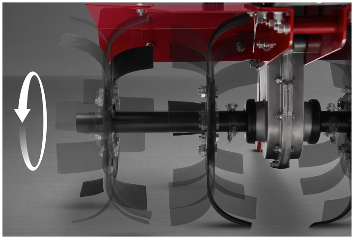 Не нужно обслуживать ножи в течение всего жизненного цикла. Ножи по технологии Long Life Blades изготавливаются из специального сплава и имеют уникальную конструкцию, которая уменьшает вибрацию во время работы, а правильный угол атаки ножа легко справляется с любым типом почвы. Ножи закаляются токами высокой частоты и во время работы сами затачиваются в земле, их не нужно обслуживать в течение всего срока эксплуатации. Закаленный нож не боится попадания камней и веток, что делает его долговечным.