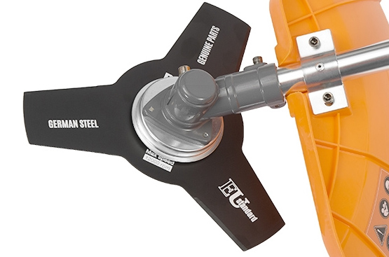 Трехлопастной нож изготовлен из высокопрочной стали, что позволяет ему сохранять остроту режущей кромки в течение длительного периода.