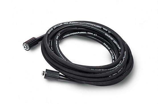 Армированный шланг высокого давления имеет запас прочности, значительно превосходящий мощность насоса, благодаря чему он с легкостью выдерживает пиковые нагрузки в моменты запуска и остановки двигателя, а также обладает устойчивостью к внешнему механическому воздействию.