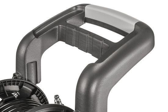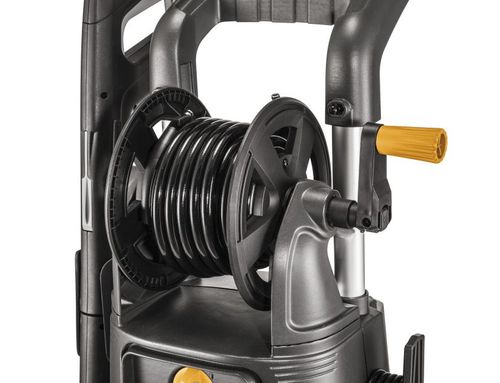 Для хранения мойки высокого давления или для регулировки рабочей длины шланга его можно наматывать на специальную катушку с помощью удобной рукоятки.